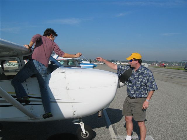 The plane erupted in exclamations about the near death experience. They like flying so much though that rather than laying the blame on me for a crappy approach they did the completely irrational thing and complimented my skills in getting us out of a tight situation. Now I have 99.9 hours of flight time. I am almost to the point that Colin said we should consider carrying passengers. I have to say that these last twenty hours have been some of the best times of my life. I’ll never forget my parents’ expression as they climbed out of the plane at Catalina. Utter joy at the feeling of having swooped in to perch on this lovely mountain top. My mom with her nose pressed against the window frantically sketching the scenery. Sharalyn taking in the familiar sights of the Los Angeles basin from a new perspective. What a blast. I hope the landings continue to be soft and that the problems in flight remain some else’s.