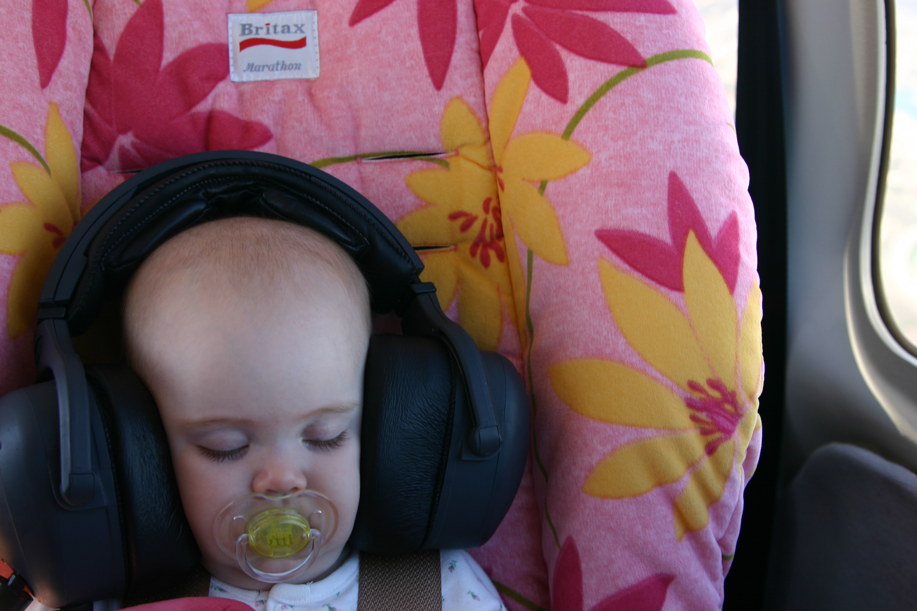Ellie is always happy, so she makes a great passenger. Usually she has a nifty headband she wears for ear protection. Since that was with Adam in his plane, she had on a real headset; the cans were almost as large as her head and you can see her puzzling over the things she was hearing. “Hold short? Who are you calling short?”