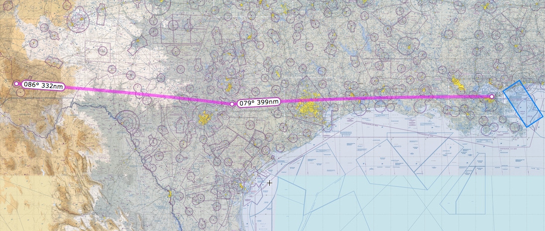 Our tailwind was still with us, and it pushed the weather out into the Gulf. We followed the Mississippi into New Orleans, flying along the I-10 (which we had followed as we left Santa Monica), and hooking out along the southern edge of Lake Pontchartrain. The airport’s tower was closed, so the approach controller let us switch to the CTAF and we self-announced. The FBO was not as professional as you might have expected in a big city, but I believe the airport is probably still recovering from Katrina. The FBO was in a double-wide and was surrounded by chain link fencing.