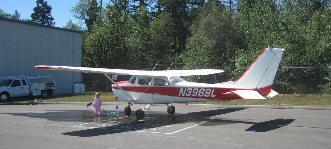 The plane needs to be cleaned. Ellie spent over an hour scrubbing it. Adam spent some smarter time finding the reason oil was slipping out of the engine and onto the outside of the plane.