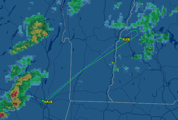 On the way through the mountains to Albany I kept checking the clouds. My mechanic in charge of the alternator replacement had said, “It’s all hooked up and runs great, but I wouldn’t make the first flight in IMC.” I was trying to decide what my options were. The further I made it into the drive, the more I thought that I was probably going to be filing to get an instrument clearance from KALB to KLEB. The mechanic had said that it wasn’t possible to charge the battery without removing it from the plane (false), and that it was a real pain to remove (true). He said the system was definitely working, that they jump-started the plane and the mechanic sat in it for twenty minutes, so there was a charge on the battery, but it probably wasn’t fully charged.