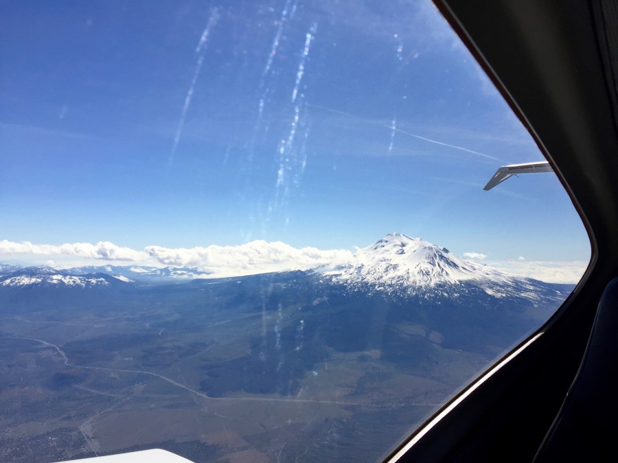Very quickly, Mount Shasta in the rear window