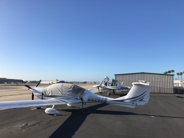 Once we were at two thousand five hundred feet we were golden. Even if the left engine had surged and we had shut it down we would have flown on to Long Beach. I asked Robert Stewart if he had ever had a real life engine shutdown in a Twinstar. (He sold us out Diamondstar and knows a lot about the fleet.) He said that once over Santa Barbara one was getting rough and he shut it down as a precaution. “Did you land in Santa Barbara on a single engine?” “Oh, no. I just turned around and flew back to Long Beach on the one engine.” Such is the performance, I guess, of the Twinstar on a single engine.